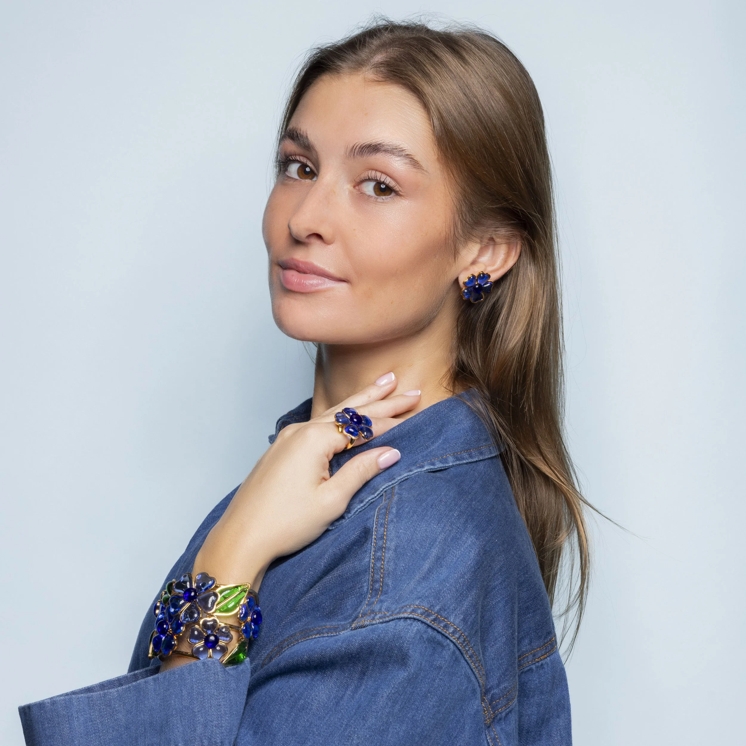 Chaque bijou de la Maison Augustine est unique, issu du savoir-faire familial exceptionnel du coulage de verre. Cette technique artisanale fait naître des pièces aux nuances légères telles que des variations de couleur et des petites bulles d’air, donnant à chaque création le charme si précieux du fait main.
