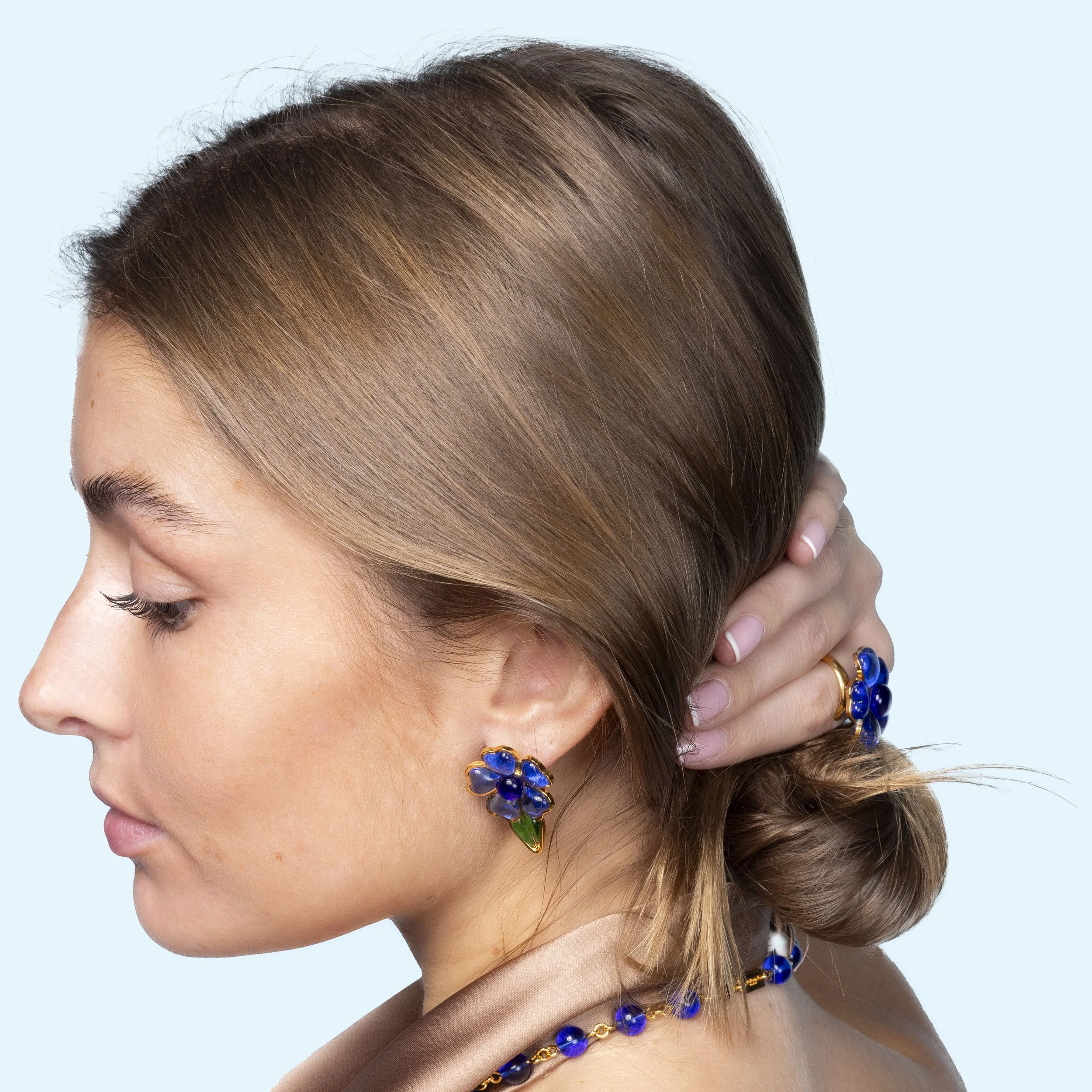 Chaque bijou de la Maison Augustine est unique, issu du savoir-faire familial exceptionnel du coulage de verre. Cette technique artisanale fait naître des pièces aux nuances légères telles que des variations de couleur et des petites bulles d’air, donnant à chaque création le charme si précieux du fait main.