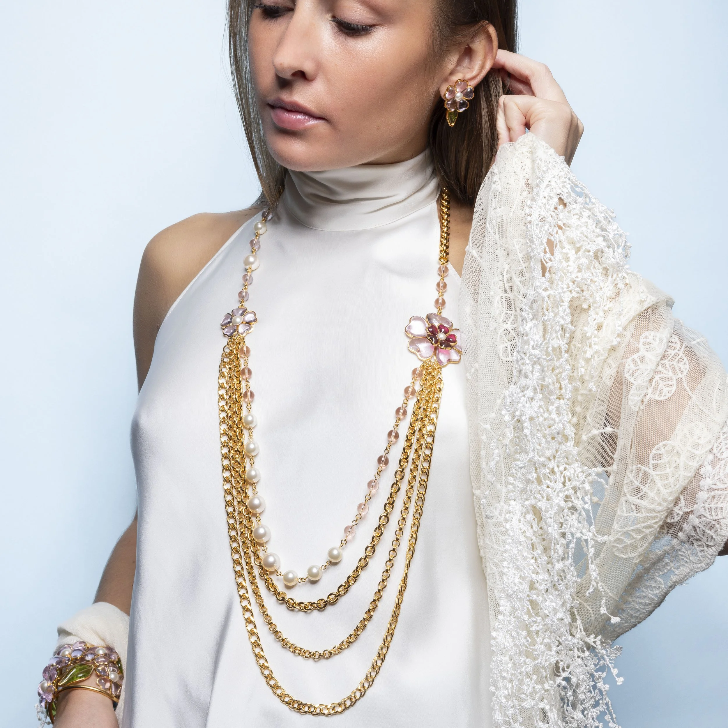 Inspirée par la grâce des pétales, chaque création joue avec la lumière et la transparence, révélant des nuances subtiles et raffinées.